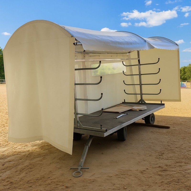 Bâche de protection résistante conçue pour porte-barres double d’obstacles d’équitation. Protège efficacement les barres contre pluie, soleil et intempéries, tout en gardant le matériel propre et en bon état.