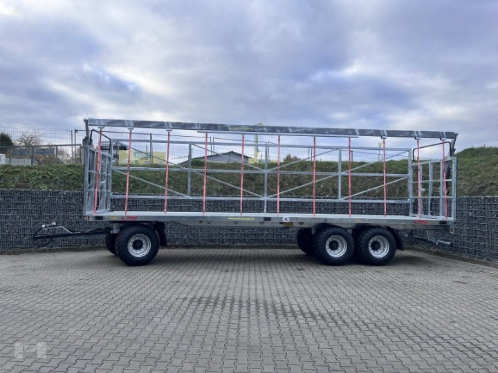 Remorque conçue pour un usage agricole intensif, idéale pour le transport sécurisé de balles, palettes et fourrages volumineux. Etc…