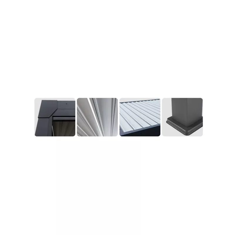 | Dimensions hors tout | L 399 X P 399 X Ht 250 cm/ 260 cm lames ouvertes |