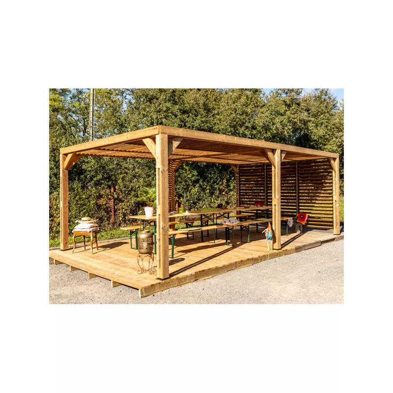 AccueuilREMORQUE TRAFFICPergolaPergola Bois Traité + Brise Vue – 20.93m2