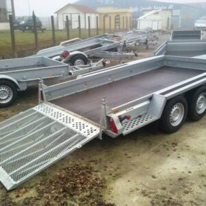 Remorque porte-engin robuste conçue pour le transport sécurisé de machines, mini-pelles, tondeuses professionnelles ou équipements de chantier. Sa conception stable et son hayon de chargement facilitent l’accès aux engins.