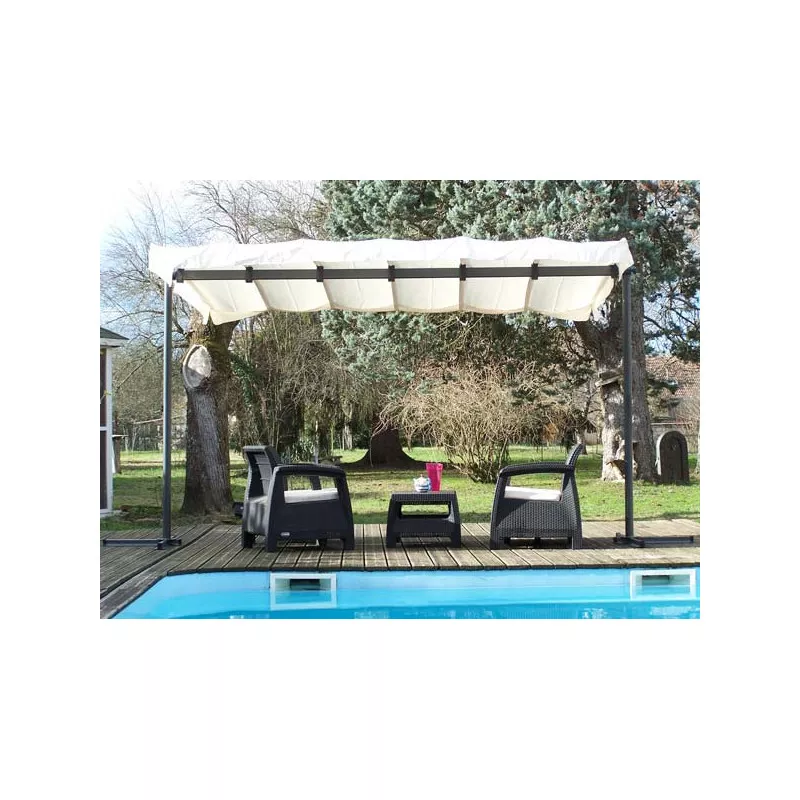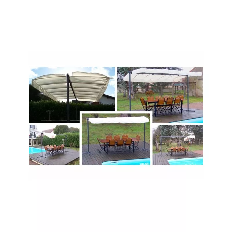 | Descriptif | TONNELLE AXE PIVOTANT AVEC TOILE RETRACTABLE – 9M2 |