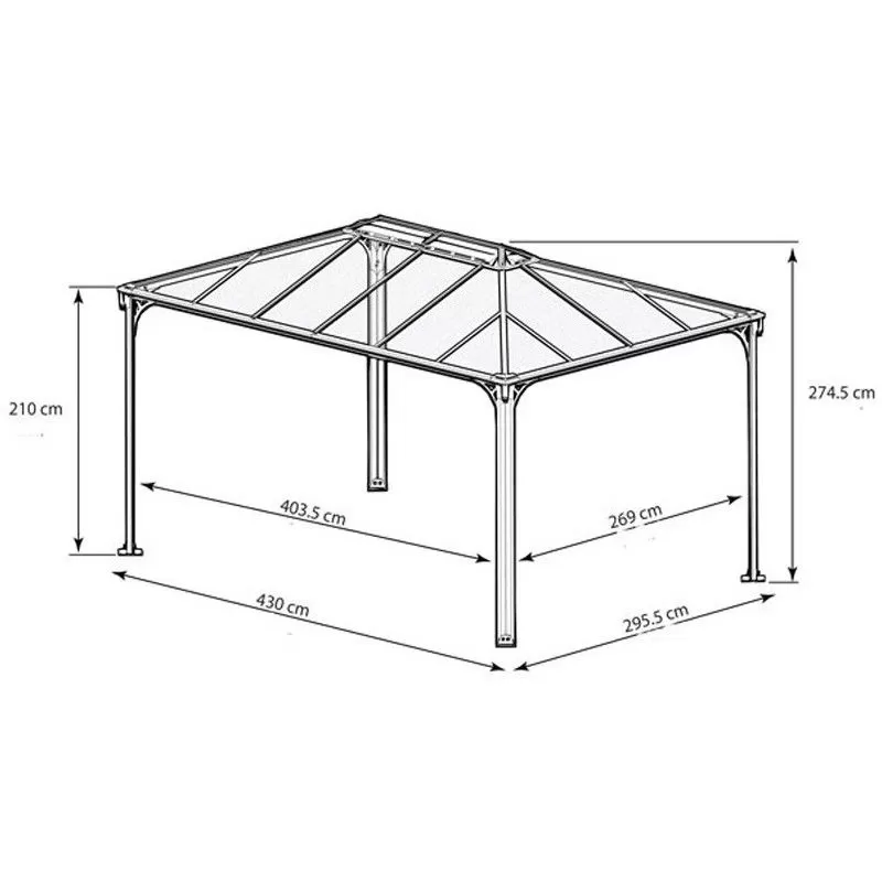 | Dimensions | L 430 x P 295.5 x H 274.5 cm |