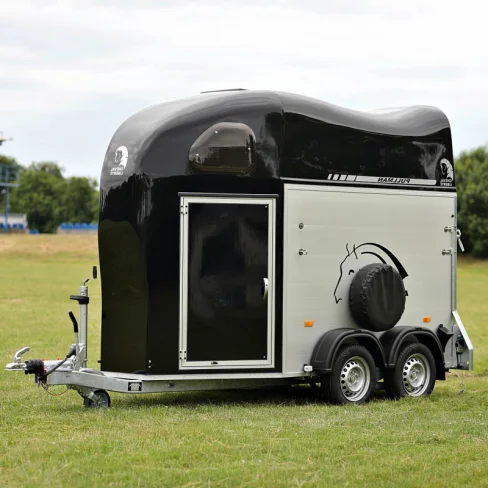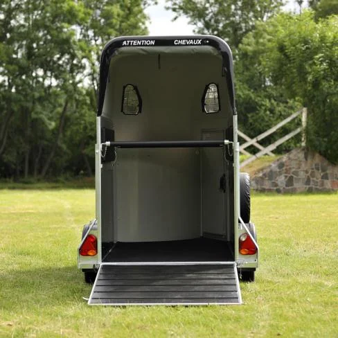 Van pour chevaux compact et fiable conçu pour assurer un transport confortable et sécurisé. Sa structure en aluminium anodisé offre légèreté, solidité et résistance aux intempéries.